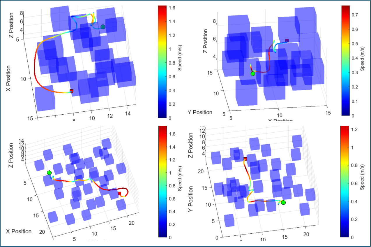 图3 三维无人机系统在不同路径下的仿真结果