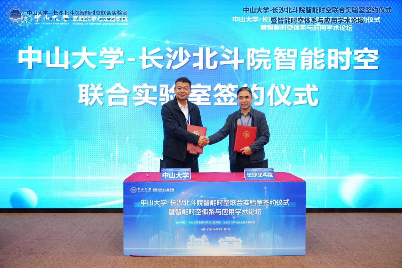 中山大学-长沙北斗院智能时空联合实验室与北斗头部企业长沙北斗产业安全技术研究院集团股份有限公司共建,以智能时空服务规模化应用为导向,积极开展卫星互联网工程、综合PNT等领域的科学研究和成果转化,实现高校与企业的产学研高效合作,支撑中山大学在商业航天和低空经济等新质生产力领域快速发展。